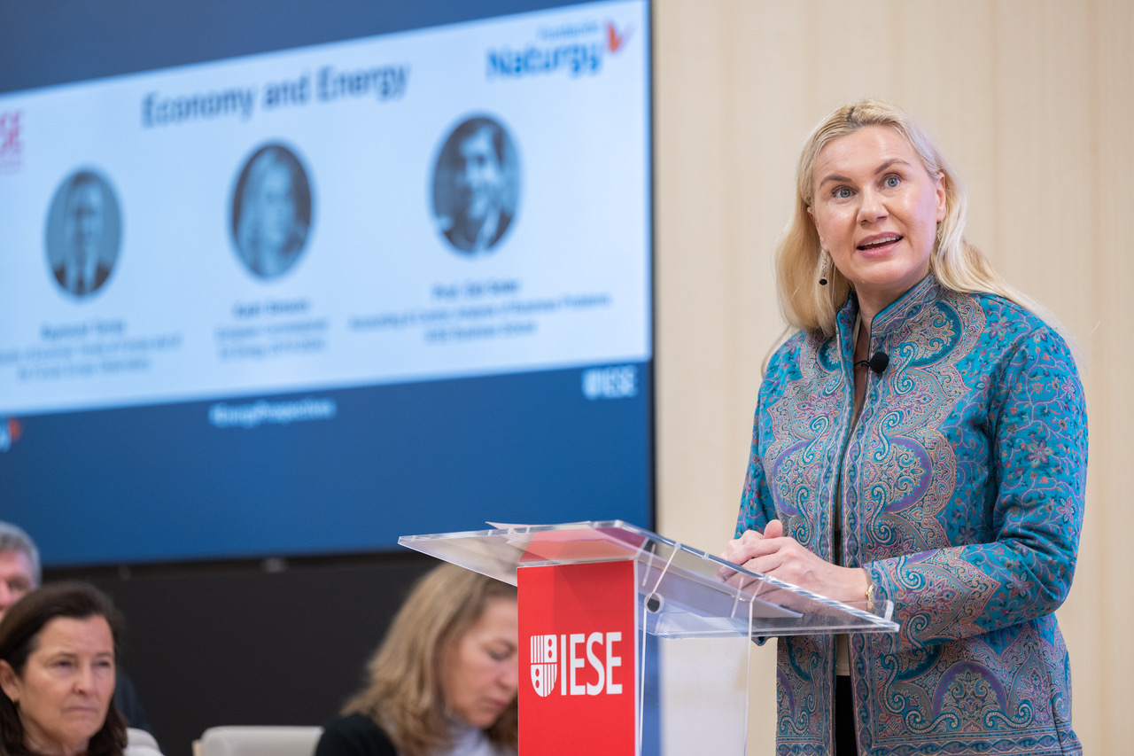 Kadri Simson, excomissària europea d’Energia durant el mandat de la primera Comissió Von der Leyen, i Raymond Torres, director de Conjuntura Econòmica de Funcas i de l’Observatori Funcas Europe, han protagonitzat la 22a sessió de conferències d’alt nivell de l’any organitzades per Fundació Naturgy i IESE Business School. En aquesta nova edició, els convidats han compartit en un col·loqui —moderat per Edi Soler, professor agregat de la Pràctica de la Direcció del Departament de Comptabilitat i Control d’IESE Business School— la seva visió sobre l’estat de l’economia mundial i les seves implicacions per al futur de l’energia.