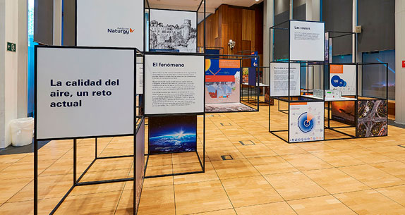 The exhibition, entitled “Air quality. A current challenge”, was created by the Naturgy Foundation to contribute to the educational, environmental and cultural development of society and to show how the phenomenon of atmospheric contamination is a key factor affecting the health of the public and the environment.. The implementation of different initiatives by administrations, private companies and the public will be an essential challenge to reach the levels set by the World Health Organisation to improve the air quality in our environment. Therefore, responsible use of energy and, in particular, natural gas as clean fuel, will be decisive factors in reducing emissions and improving air quality. The exhibition, which was curated by Dr. Xavier Querol, an expert in atmospheric contamination, provides the tools to learn about and understand the key factors that affect air quality through four sections: the description of the phenomenon, the causes, the effects and the solutions to deal with it.